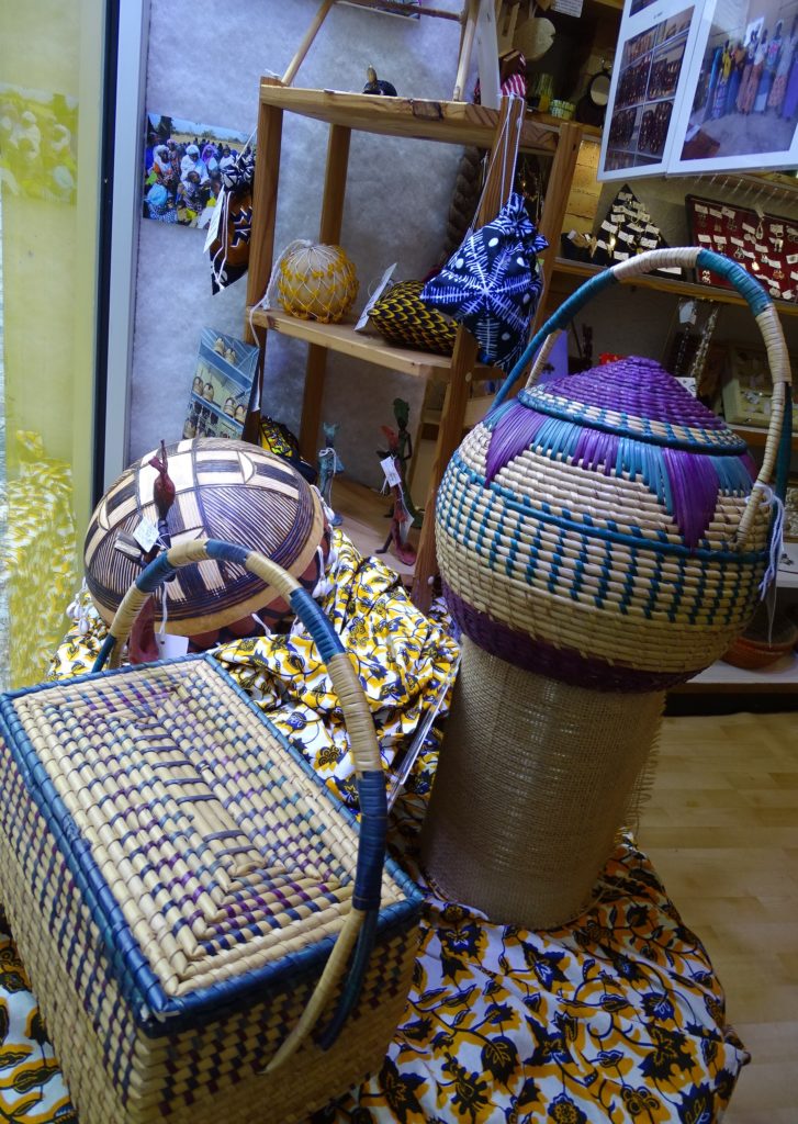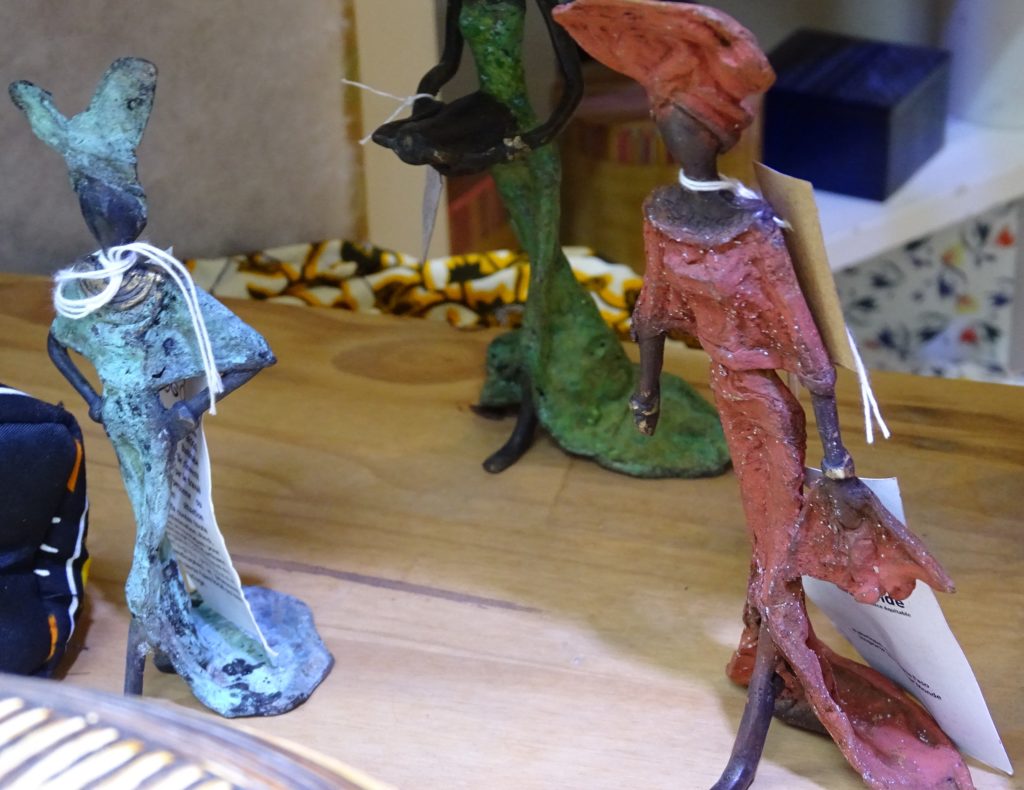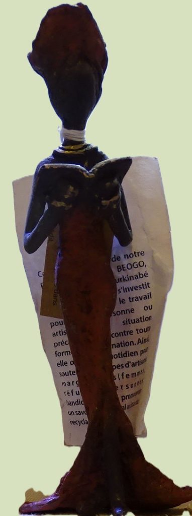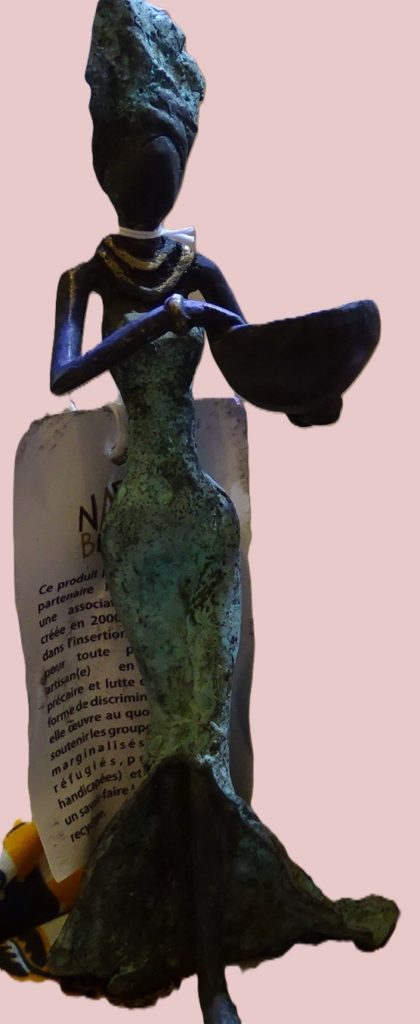 Pour compléter la mise à l’honneur des femmes, nous vous proposons ces statuettes de femmes créées par la coopérative du Burkina Faso : NAPAM BEOGO accompagnées de paniers tressés et pochettes en tissu africain.