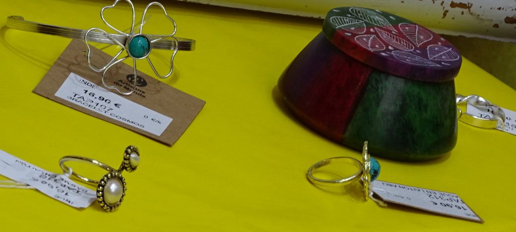 des bijoux, des bougeoirs en bois sculpté, bougeoirs et boites en pierre à savon